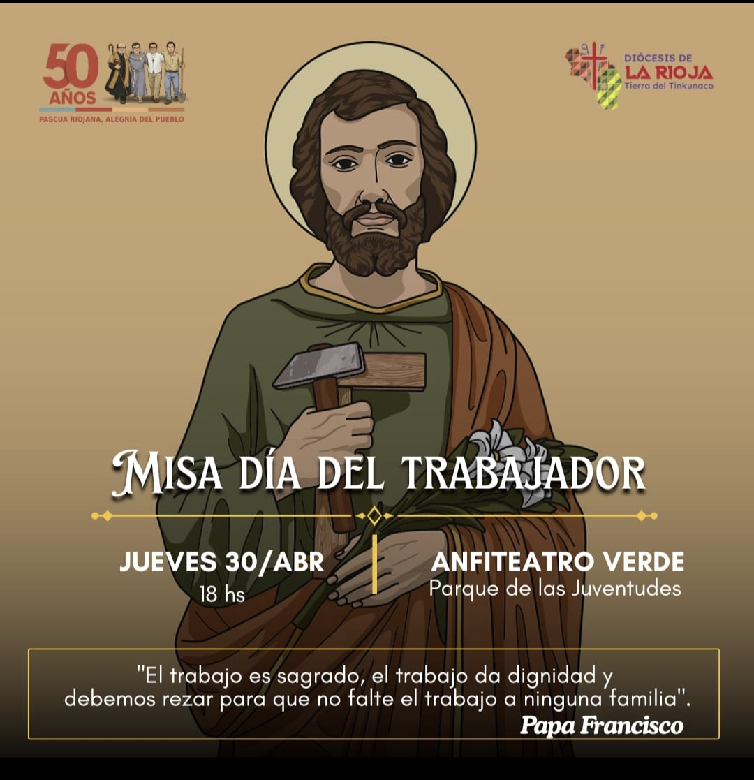 El Secretario General Carlos «Pancho» Euliarte y De Mas miembros del Consejo Directivo, invitan ese Jueves 30 de abril a La misa de Acción de Gracias al conmemorarse el Dia Del Trabajador, la misma se llevara a cabo en el Anfiteatro Verde del Parque de Las Juventudes a Hora 18. Esperamos la presencia de los Trabajadores